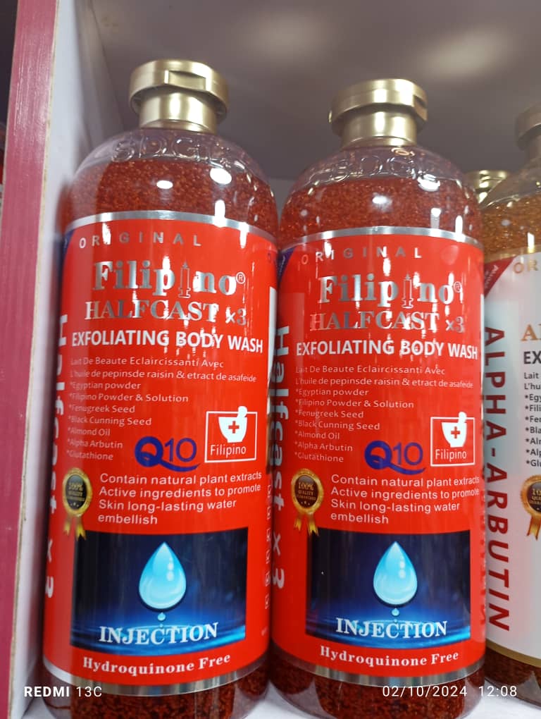Filipino Half Cast X3 Body Wash is a premium skincare solution crafted to cleanse, brighten, and nourish your skin. Its unique formula combines advanced brightening agents with moisturizing properties, helping to reduce dark spots, even out skin tone, and maintain hydration. The rich lather gently removes dirt and impurities, leaving your skin soft, smooth, and refreshed. Designed for daily use, this body wash enhances your skin???s natural glow, making it an essential part of your skincare routine. Achieve a flawless and radiant complexion with Filipino Half Cast X3 Body Wash.