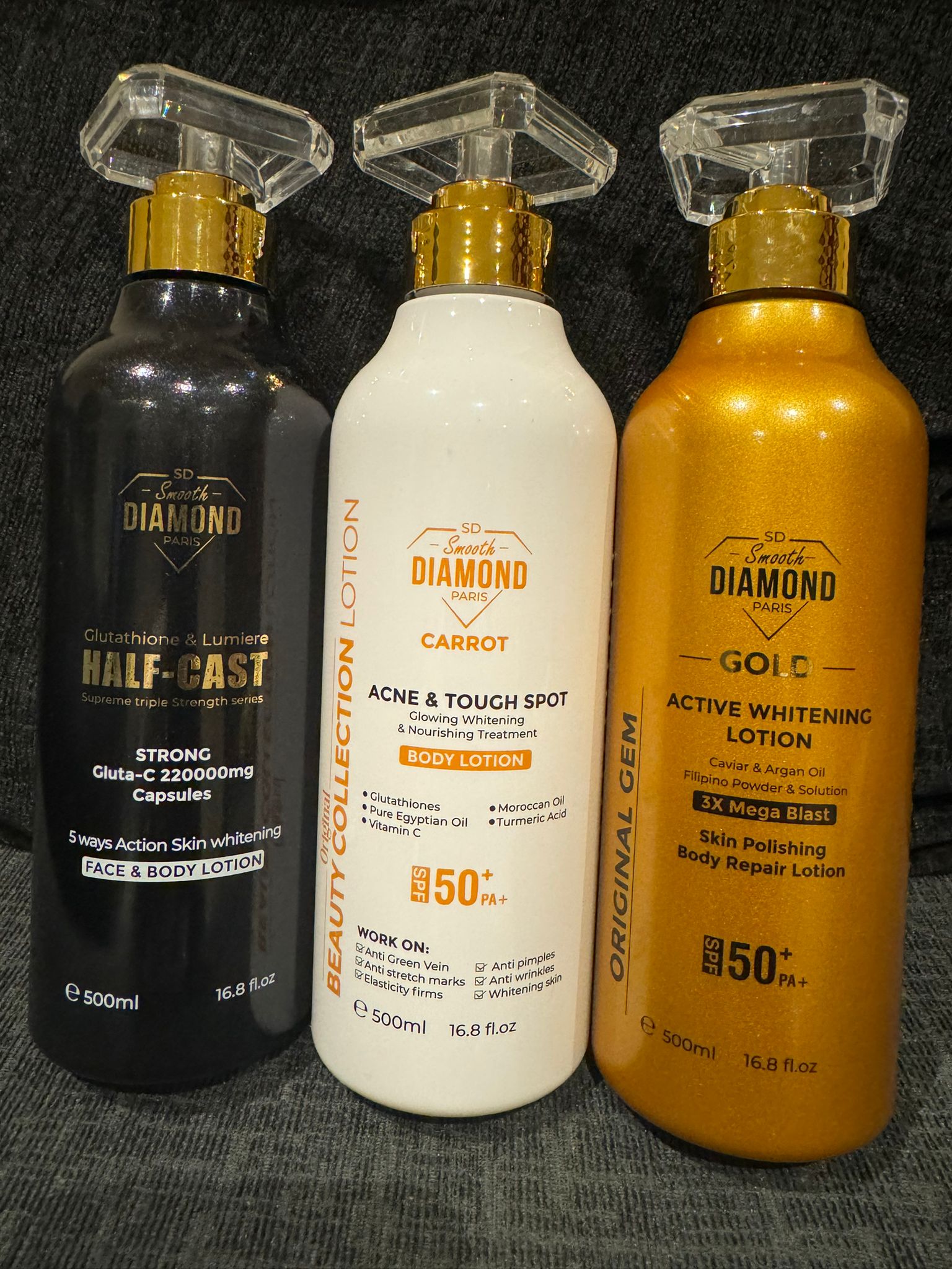 Smooth Diamond Carrot Lotion is specifically designed to combat acne and tough skin spots while nourishing and hydrating the skin. Infused with carrot extract, known for its skin-clearing properties, this lotion works to reduce blemishes, unclog pores, and improve skin texture. Its rich blend of moisturizing ingredients ensures your skin remains hydrated and soft throughout the day. The lotion???s lightweight and fast-absorbing formula makes it suitable for daily use. With consistent application, Smooth Diamond Carrot Lotion promotes a clearer, healthier complexion while addressing tough skin challenges effectively.